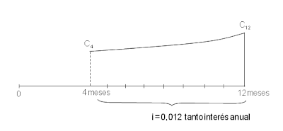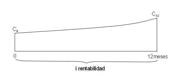 Las dos inversiones anteriores las vamos a interpretar como una única operación; donde partimos del mismo capital inicial Co, obtenemos el mismo capital final C12, con la misma duración 12 meses. Todo ello aplicado a un tanto efectivo anual único, que llamaremos rentabilidad de la operación, que será equivalente a todos los tantos utilizados en esta operación