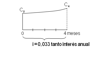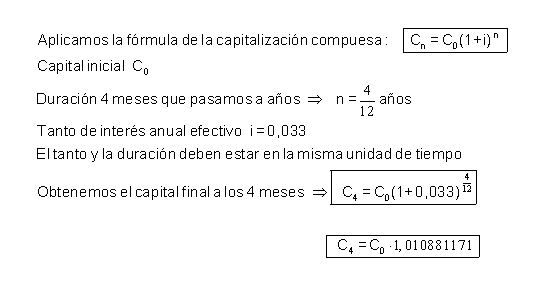 Tanto anual efectivo 3,30% que pasamos a tanto por uno anual dividiendo por 100: i=0,033