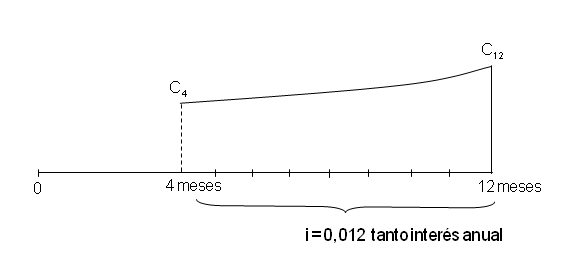 Las dos inversiones anteriores las vamos a interpretar como una única operación; donde partimos del mismo capital inicial Co, obtenemos el mismo capital final C12, con la misma duración 12 meses. Todo ello aplicado a un tanto efectivo anual único, que llamaremos rentabilidad de la operación, que será equivalente a todos los tantos utilizados en esta operación